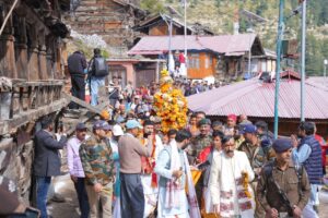 इसके बाद मार्कण्डेय मंदिर से होकर यात्रा आगे बढ़ी और श्रद्धालुओं के “हर हर गंगे” के जयघोष के बीच माँ गंगा की डोली करीब 2 बजे मुखवा (मुखीमठ) स्थित शीतकालीन प्रवास स्थल पर पहुँची। यहाँ गाँववासियों और श्रद्धालुओं ने पारंपरिक वाद्य यंत्रों, ढोल-दमाऊं और फूलों से सजी आरती के साथ माँ गंगा का स्वागत किया।