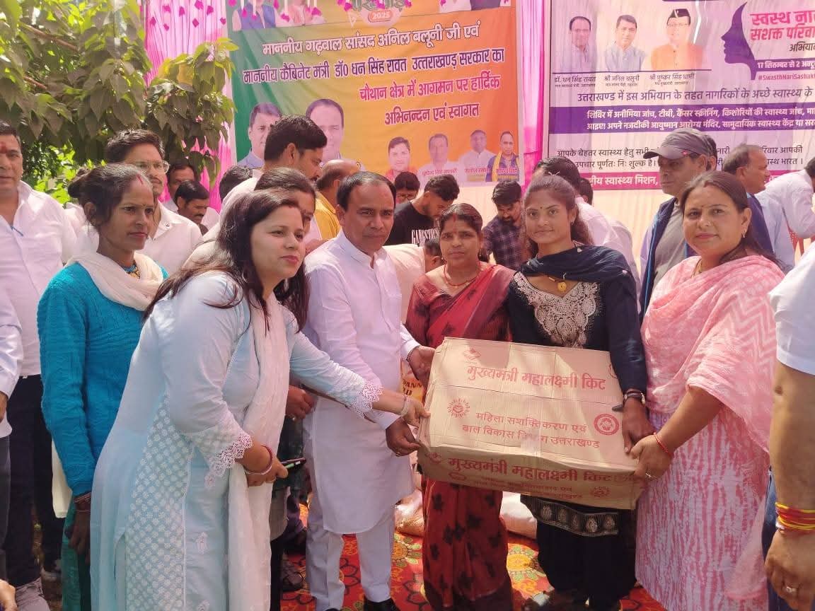 शिविर के दौरान मंत्री ने लाभार्थियों को मुख्यमंत्री महालक्ष्मी किट तथा आपदा पीड़ित परिवारों को राशन सामग्री वितरित की। इस अवसर पर विभिन्न विभागों द्वारा स्टॉल भी लगाए गए, जिनके माध्यम से ग्रामीणों को सरकारी योजनाओं के बारे में जानकारी दी गयी और कई लोग योजनाओं से सीधे लाभान्वित भी हुए। शिविर के दौरान उच्च रक्तचाप, मधुमेह, कैंसर, किशोरियों व महिलाओं में एनीमिया की जांच नि:शुल्क की गयी।
