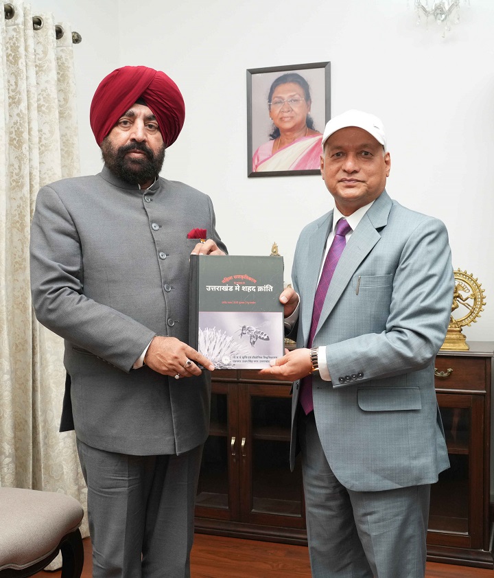 राज्यपाल लेफ्टिनेंट जनरल गुरमीत सिंह (से नि) से मंगलवार को राजभवन में गोविन्द बल्लभ पंत कृषि एवं प्रौद्योगिक विश्वविद्यालय, पंतनगर के कुलपति डॉ. मनमोहन सिंह चौहान ने मुलाकात की। इस अवसर पर कुलपति ने राज्यपाल को कॉफी टेबल बुक ‘‘महिला सशक्तीकरण के माध्यम से उत्तराखण्ड में शहद क्रांति’’ भेंट की, जिसमें विश्वविद्यालय द्वारा मधुमक्खी पालन के क्षेत्र में पिछले एक वर्ष में किए गए शोध, प्रशिक्षण और ग्रामीण महिलाओं की सहभागिता के बारे में जानकारी दी गई है।